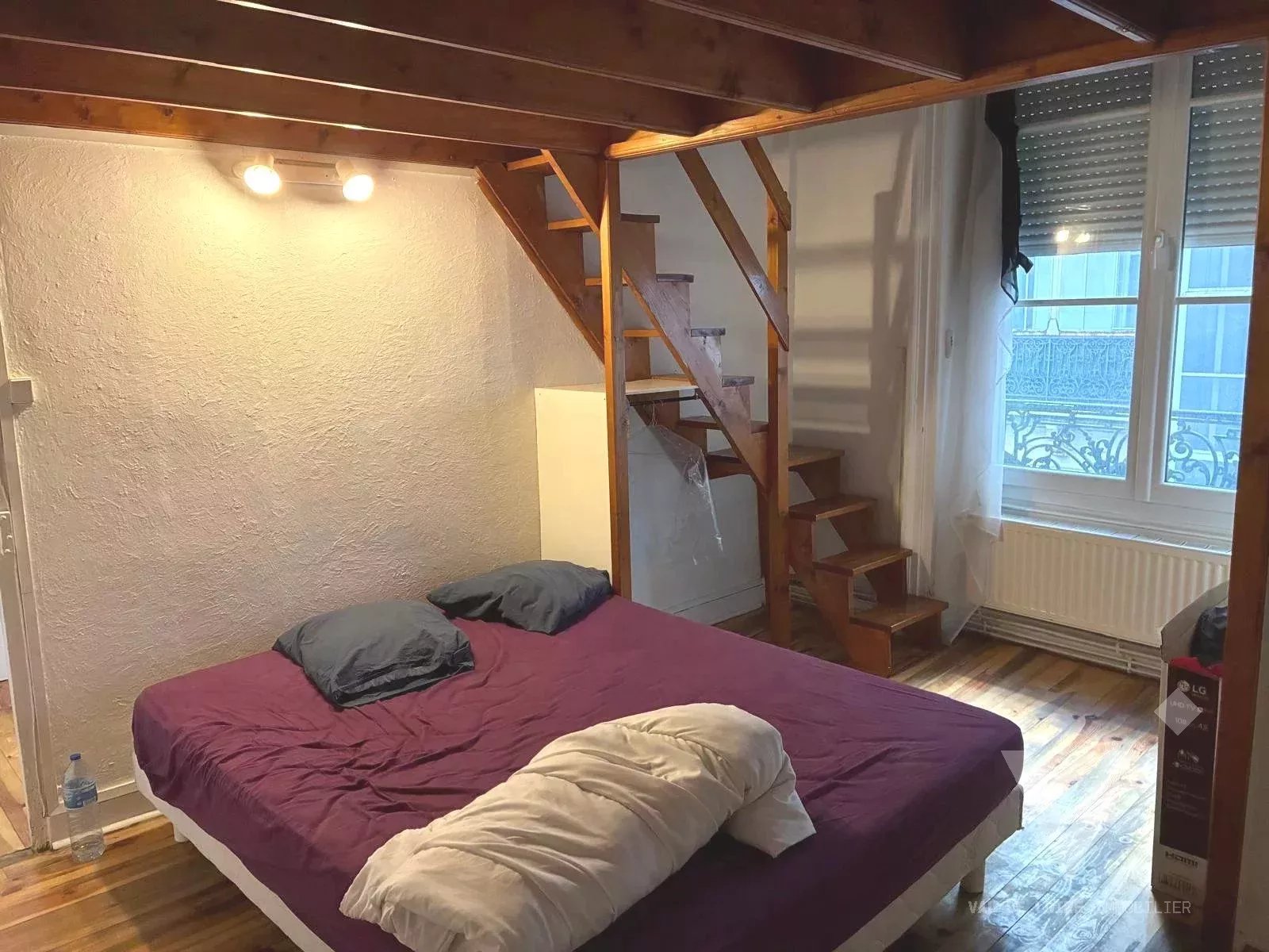 Hyper centre Proche de toute commodités, transports Nous vous proposons cet appartement donnant sur cour, idéal pour investisseurs. Composé d'une pièce de vie avec cuisine ouverte, d'une chambre, une deuxième en mezzanine, salle de bain-wc, grandes ouvertures en double vitrage, volets électrique, belle luminosité, chauffage individuel gaz opportunité a saisir. Contactez notre commercial : THIERRY REYNAUD O6.08.95.53.95 Agent commercial El inscrit au RSAC de Saint Etienne sous le n° 44819257500034