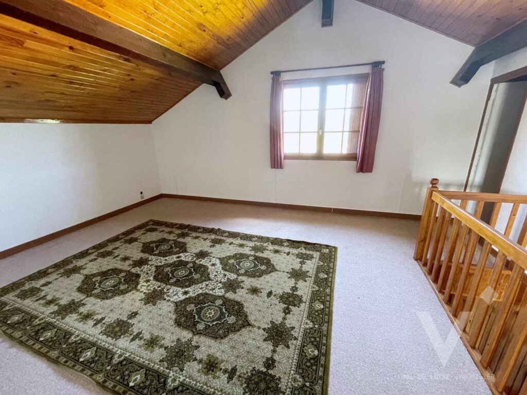 A l’ETAGE : 2 grandes pièces peu mansardées pouvant constituer une suite parentale ou une chambre + bureau